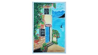 Oil pastel drawing of simple village scenery | Oil pastel drawing | kidsportal6978 | Scenery drawing