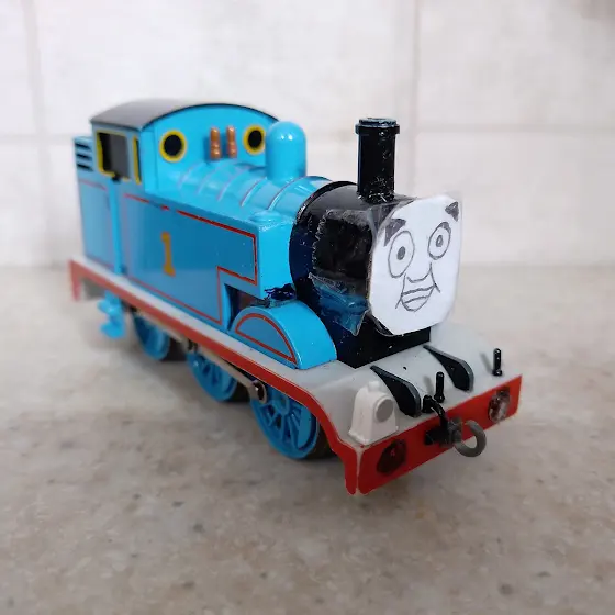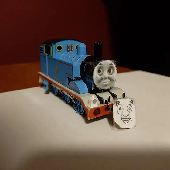 Hi Folks, Here's a fun question for you. I just pulled out my Bachmann Thomas model and used my tweezers to remove the eye mechanism so that I can give him a new face. Plus I drew Thomas' face and stuck it on his smoke box. Now I'm wondering if he looks cool like this?