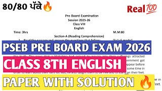 Pseb 8th english pre board exam solution| 8th pseb english solution pseb pre board 8th english paper