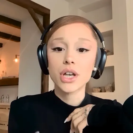 ariana for the vanity fair wicked podcast!! her deep voice is back and she has her brunette hair!