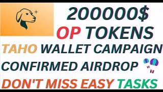 🤑#TAHO WALLET #OP TOKEN CONFIRMED AIRDROP 🪂 200000$ #OPTIMISM REWARD FOR GRAB DON'T MISS EASY TASKS🤑
