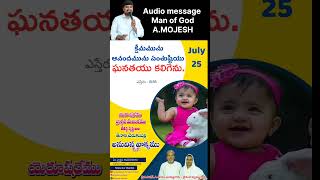 మన ప్రభువైన యేసు క్రీస్తు నామమున సహోదరి సహోదరులకు హృదయపూర్వక వందనములు. ప్రభువు అనుగ్రహించిన జ్ఞానమును బట్టి దేవుని వాక్యమును మీకు ప్రకటించుచున్నాను. గనుక వాక్యమును విని ఆత్మీయముగా బలపడండి దేవునికి దగ్గరగా జీవించండి. ఇట్టి వాక్యము చేత మీరు బలపరచబడినట్లైతే మా పరిచర్యను subscrib చేయండి .మీ ప్రార్ధన అవసరతలు మాకు తెలియజేయండి. దేవుడు మిమ్మును దీవించును గాక !