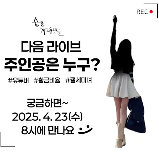 4월 23일! 수요일 저녁 8시에 다음 라이브 주인공이 찾아옵니다😁황금비율에 절세 미녀인 그녀!(아마도) 34-24-36 환상적인 몸매를 자랑하는 그녀가 궁금하다면23일 8시에 커몬~!🤭