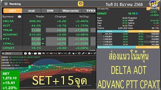 SET +15 points. Speculative trading in DELTA, GULF, PTT, ADVANC, and CPALL stocks on December 22,...