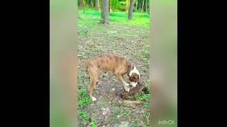 American bulldog in the deep forest π³ looking for a snake π!