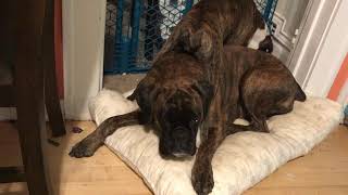 We had bred and raised AKC registered boxers in our home. Penny retired after her 3rd and final emergency c-section. Penny’s daughter, River, (from her 2nd liter) had her opportunity for puppies and only had one…she also retired per advice from the vet.