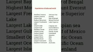 Superlatives of the world I World largest smallest longest shortest I Superlatives India and world I