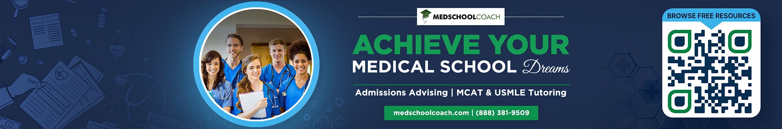 MedSchoolCoach is your trusted guide through every step of the journey to becoming a physician, from taking the MCAT to applying to residency and everything in between. We coach over 2,500 aspiring doctors a year with a range of 1-on-1 services, including: