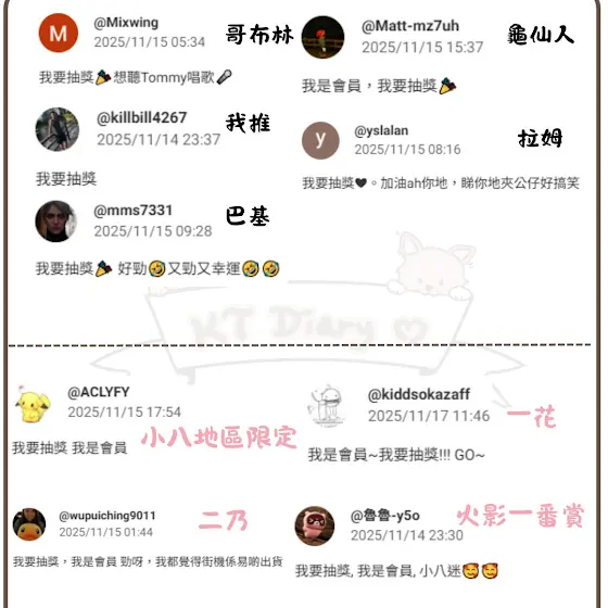 台主名稱及店名將於影片及抽獎post中列出