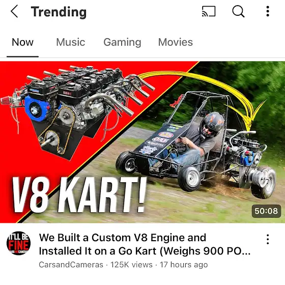 Woo hoo! Our custom 1.7L V8 go-kart is TRENDING!! This is a bucket list YouTube milestone for us, and we couldn’t have done it without YOU. Huge thanks to everyone who’s watched the build—if you haven’t seen it yet, now’s the time!