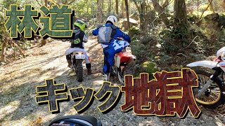 後輩にはめられ【キック地獄】10年ぶりのオフロードバイクで林道ツーリング。CRF250にて参戦。爽やかツーリングと思っていた本人…とんだところに連れてかれる。セロー250、TT250R、ヒルクライム、