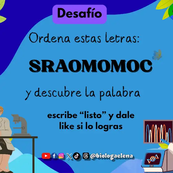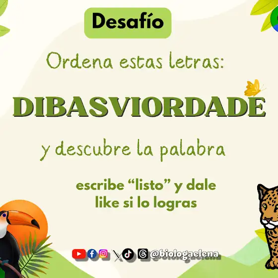 ¡DESAFÍO CIENTÍFICO! 🧬 ¿Puedes descifrar esta palabra? ¡Hola! 👋 Su Bióloga Elena les trae un nuevo reto para activar esas neuronas. 🧠 He desordenado una palabra clave del mundo natural que siempre me encanta compartir con ustedes. ¿Están listos para el desafío?