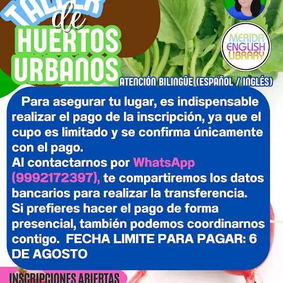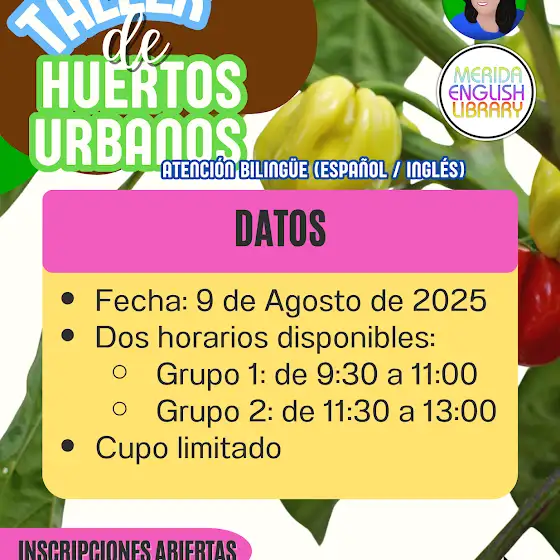 Si te entusiasma la idea y quieres aprender todos los secretos para empezar tu huerto, te invitamos a nuestro Taller Práctico de Huertos Urbanos en Mérida Yucatán el sábado 9 de agosto de 2025.
