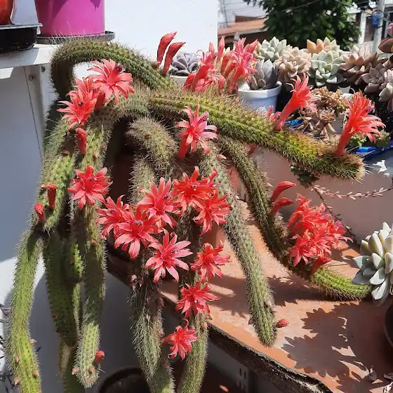 Feliz domingo queridos plantlovers. Les compartimos nuestro maravilloso Cleistocactus Samaipatanus en plena floración, para alegrar aun mas su mañana.