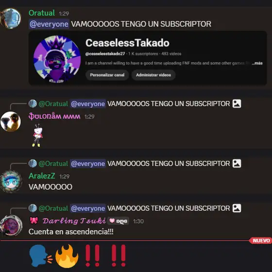 I am a channel willing to have a good time uploading FNF mods and some other games like horror or random RPG with my voice :D (I will be speaking in spanish only)