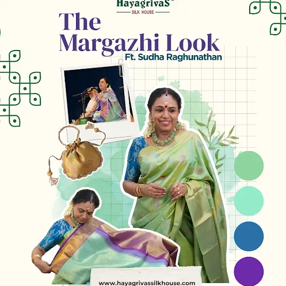 Recreate The Margazhi Look inspired by Sudha Raghunathan mam with our classic silk sarees—perfect for sabhas, temple visits, and festive gatherings.