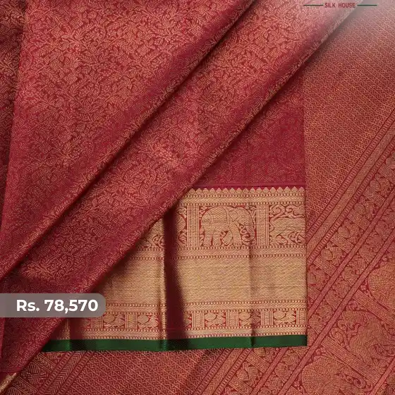 Woven in pure silk with rich zari, these heirloom sarees reflect the elegance admired in classical traditions — making them perfect for muhurtham moments and generations to come.