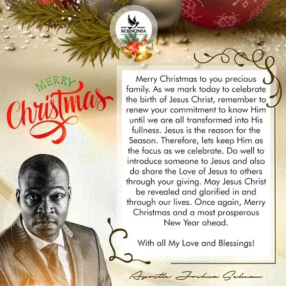 Happy Christmas from me - Apostle Joshua Selman @koinoniaGlobal