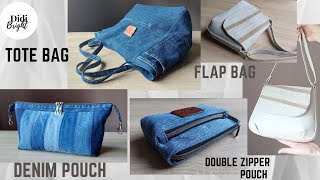 Jeans Round pouch with Ruffle sewing tutorial. Denim Pouch DIY | Easy Sewing Tutorial from Old Jeans