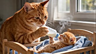 The First Day a Mother Cat Cares for Her Newborn Kitten at Home 🍼🐱💕 Raising and Nursing It All Alone