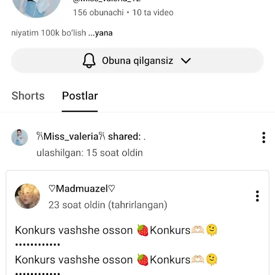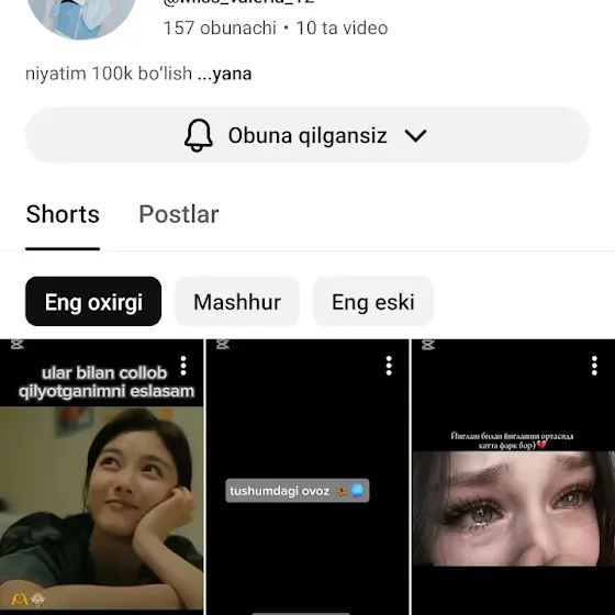 8.youtube.com/@moh1nur_013?si=UDCScVQDEYC5S7lk 312+3=315 ta boʼldiz 🫠