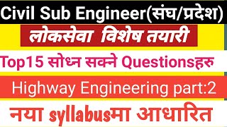 Highway Engineering Part-2अति सम्भावनाका questions हरु||Civil Sub Engineer||संघ/प्रदेश लोकसेवा तयारि