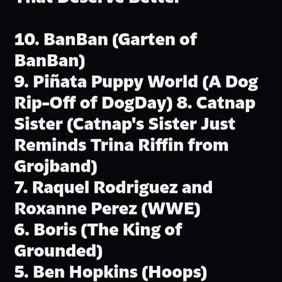least/hate characters:Jimmy Crystal,Norm The Polar Bear,Clarissa,Professor Marmalade,Marmaduke(2022 only),Mizuchi,Governor(TWD)