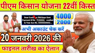 पीएम किसान योजना 22वी किस्त फाइनल ऐलान 15 जनवरी 2026 लाभार्थियों के लिए बड़ी खुशखबरी मोदी जी का ऐलान