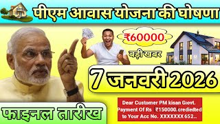 पीएम आवास योजना । लाभार्थियों को मिलेंगी 60000 की पहली किस्त 7 जनवरी 2026 फाइनल तारीख पहली किस्त की।