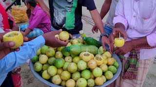 Most Delicious Spicy Mix Fruits Green Banana Boroi Tetul and Hog Plum Vorta | Extremely Knife Skills