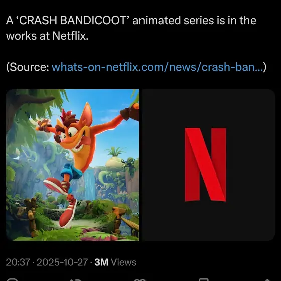 Beenox (creators of Crash Team Racing: Nitro Fueled) just updated their social media banner, the banner featured a bunch of games they had worked on in the past. But also seemed to feature brand new artwork of Crash (using his Crash 4 design) on a kart. Could a new Crash racing game be in development?