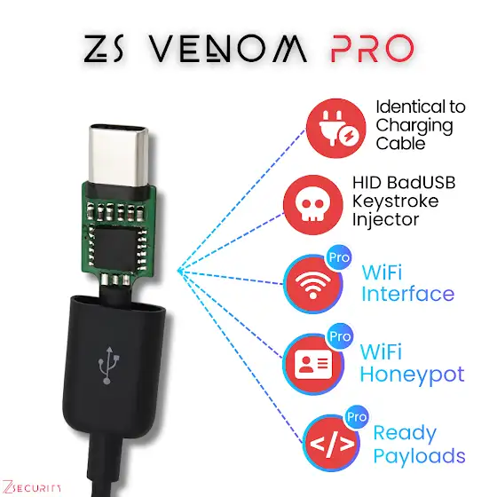 The charging cable retains the stealth of the standard ZS Venom with HID BadUSB Keystroke Injection capabilities but unlocks serious new offensive power!