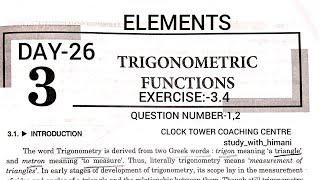 Grade-11|Day-26|Elements Solution|Trigonometric|chapter-3|ex-3.4|Question no -1,2 #cbse #hbse #maths