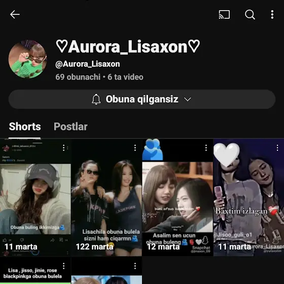salom🫧 my #lalisajonka's💫 qalesila karochi man YT ga 3 4 kun kiromeman esli bulib õtirila aktivni tushirmasdan atpis qimasdan men kegunimcha qaniydi 8 k busak kegunimcha 8 k qilolasilami🫤 menimcha shu shanba kunlar keb qosam kere 💅