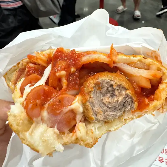 cheese很香,有很多肉丸,切塊香腸,洋蔥,番茄醬也