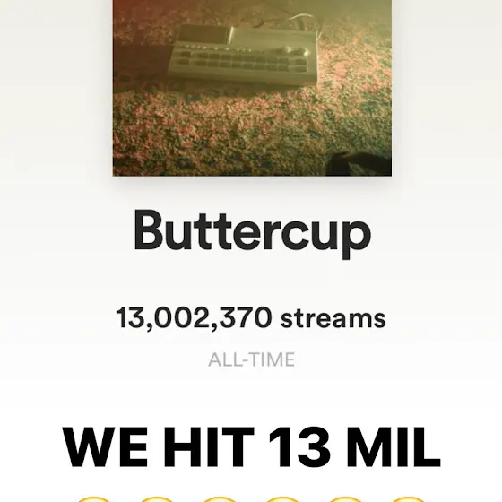 BUTTERCUP HIT 13 MILLION STREAMS ON SPOTIFY