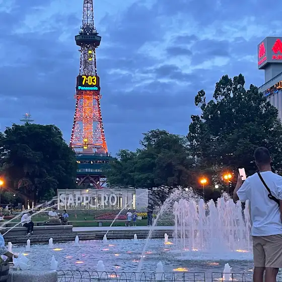 삿포로 오도리 공원 분수대와 TV타워