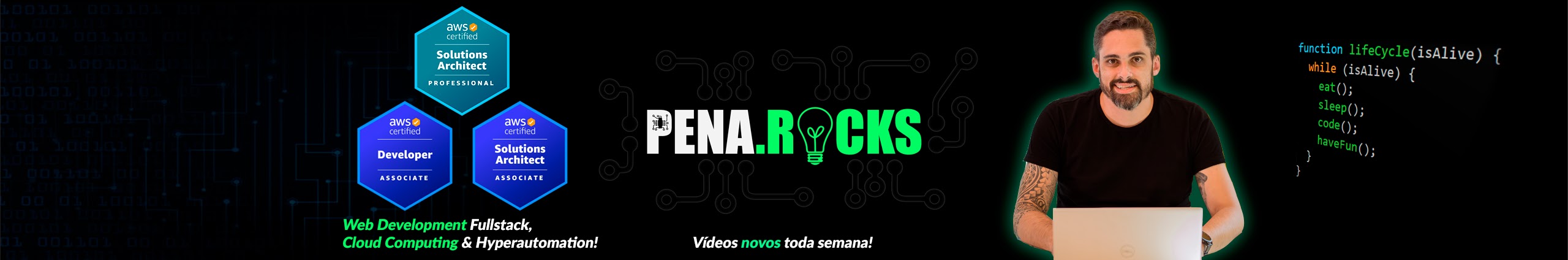 The creator of the channel, Fernando Pena, is a solutions architect and has been working with Technology for almost 20 years, starting his career as a Software Developer and IT technical support, and reaching the position of Solutions Architect, where he works mainly with SAP and AWS.