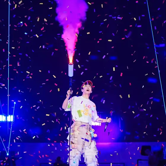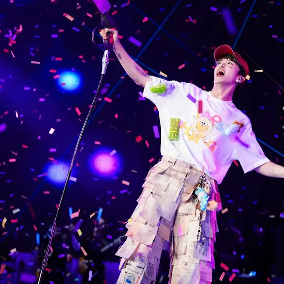Singer Lars Huang @hzhf_larsss wearing TAOYUAN CHEN AW25 Workwear Camo Flares on his concert💫
