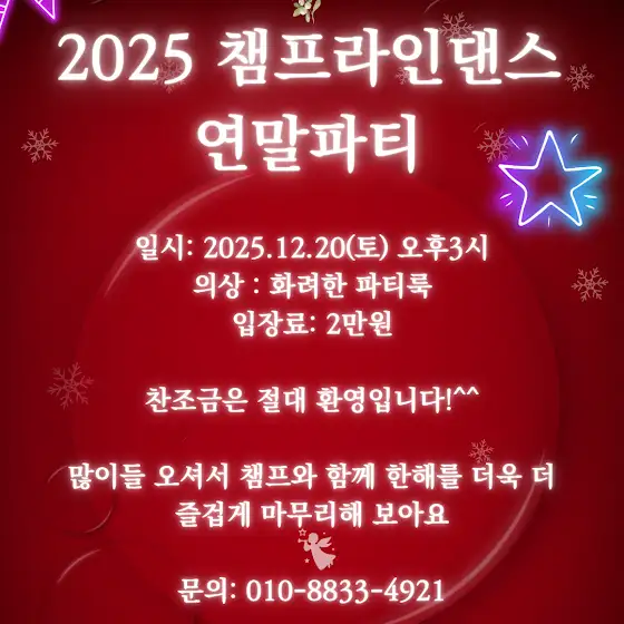 💥💥💥2025 챔프라인댄스 연말파티 선착순 접수시작~♡