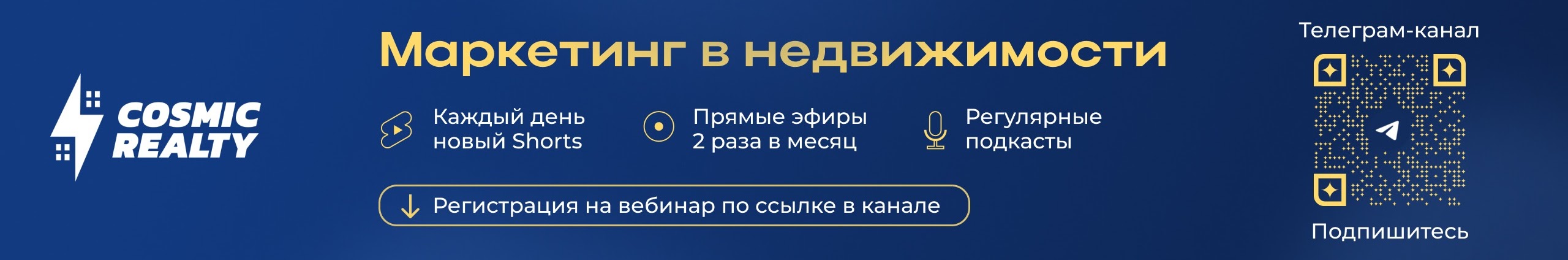 Cosmic Realty — маркетинговое агентство в сфере недвижимости. Поток клиентов для любого типа недвижимости: новостройки, вторичная, коммерческая, загородная, иностранная.