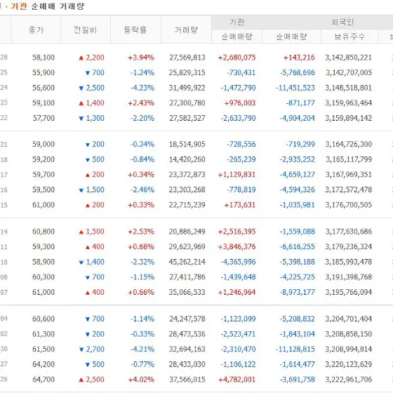 (외국인 +159,697주 / 개인 -2,885,289주 / 기관 +2,680,075주)