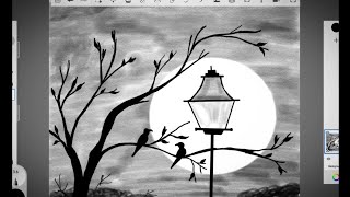Beautifulx Pencil Shading Scenery Easy Circle Drawing Sunset with House & Trees Sketch for Beginners