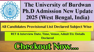 Kalyani University PhD Interview Schedule Declared l Viva Date Time Venue etc Details Subject Wise l