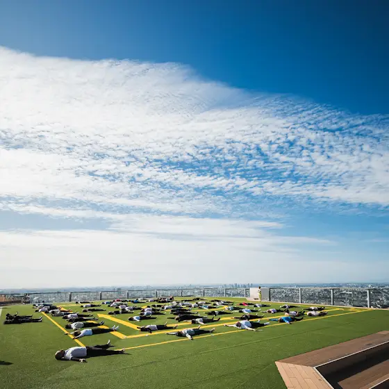 渋谷上空229mから始まる1日。オープンエアの屋上展望空間で秋空の下、心身を解放し、身体を整える「ピラティス」のプログラムをお届けします。