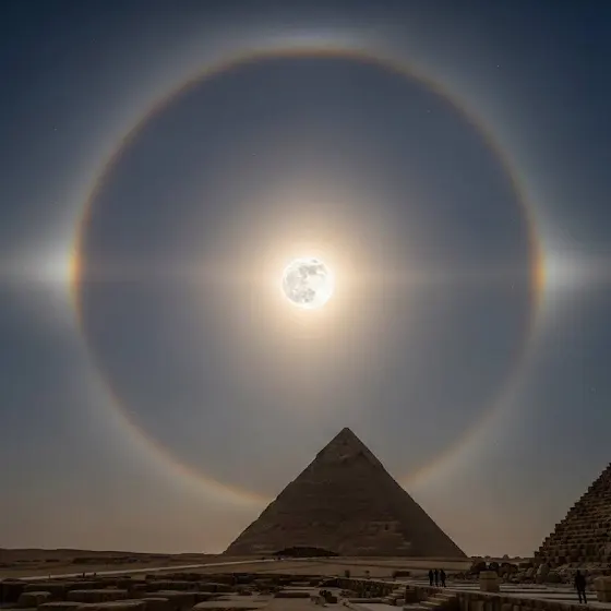 Лунное гало над египетскими пирамидами