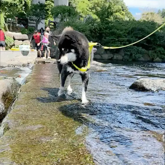 오늘은 곰이가 먼저 거침없이 물에 들어가