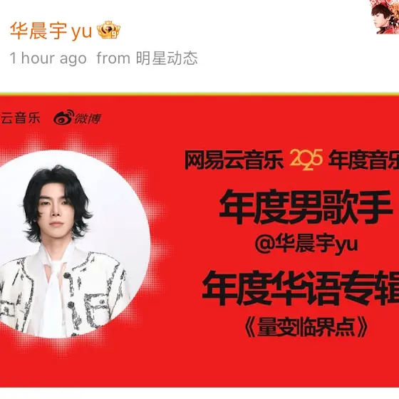 Congratulations to @HuaChenyu for winning the #NetEaseCloudMusic2025AnnualMusicAwards#!