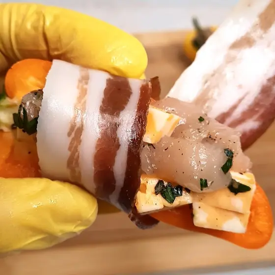 https://youtu.be/670HrrFBRo0 👈🏻 Шикарные фаршированные мини-перцы в беконе. Советую попробовать!