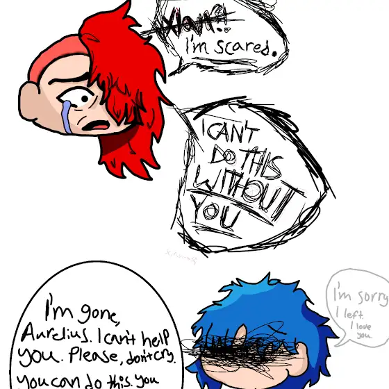 "I dont know what to do. X̶i̶a̶n̶, im scared. I dont know what to do or where to go. I dont have anywhere to go and im so, so, SOOO alone." Aurelius started crying. Without his brother guiding him he realized he'd always be alone."